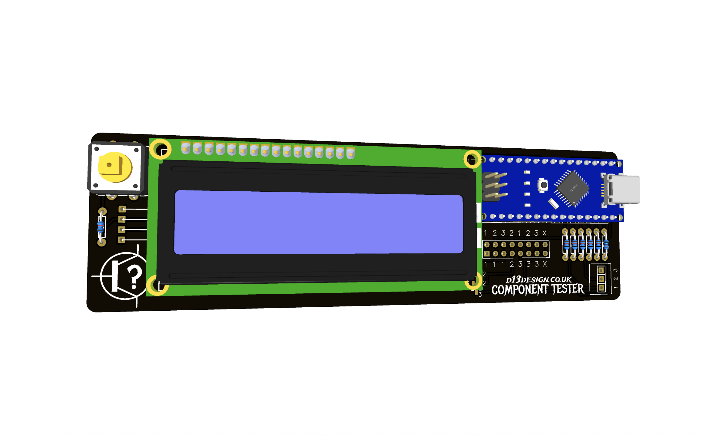 The resistors are all used to help the Arduino define some base values which then drive the accuracy of the tester. Because of this, I’d advise metal film resistors as they tend to have improved tolerances and you might want to grab a batch and measure them with a multimeter to find those that measure as close to the required values as possible.